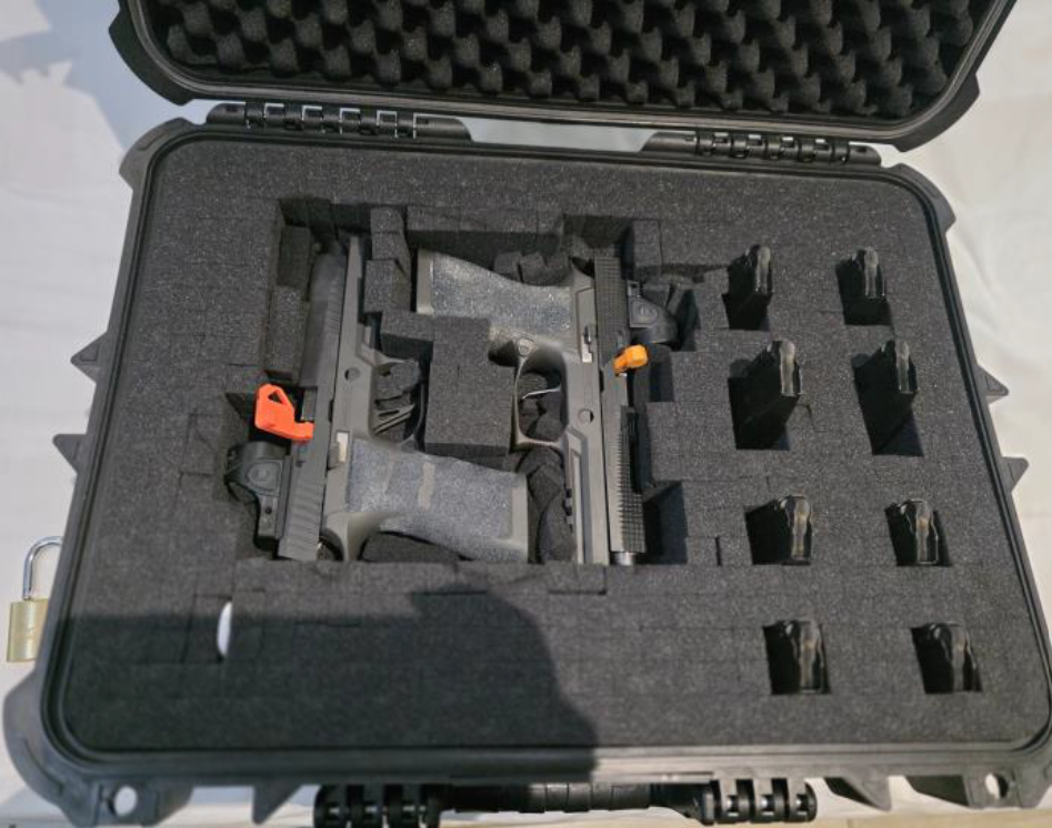 I unload the gun completely, lock the slide back, sometimes drop in a chamber flag just to be extra friendly, and place the empty mags alongside it in the foam (and I usually tuck an AirTag in the case as well, so I can track it at all times on my phone).