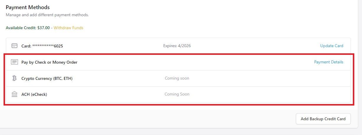 Today we rolled out the ability to fund your account with a check or money order and added placeholders for ACH and Crypto - both of which we are very close to rolling out.