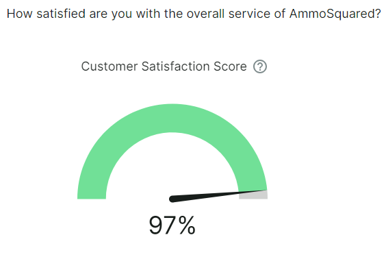 Overall Satisfaction with AmmoSquared... is GREAT! I'm very happy to hear this. Here's how that looks: