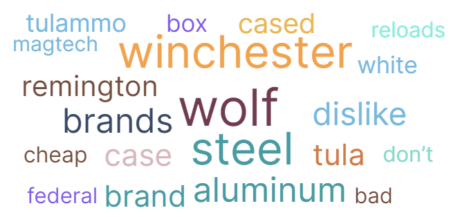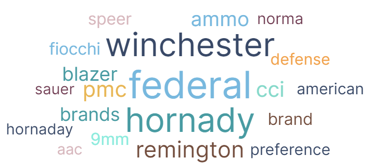 Here is the word cloud for the question: What brands of ammunition do you like the most?